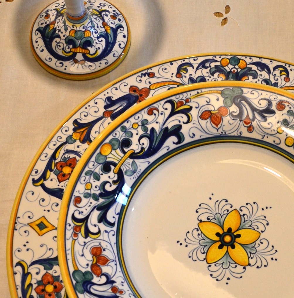 One of the most expressive ways to add depth and authenticity to your mise en place is through handmade ceramics. In regions like Umbria, the town of Deruta has been producing painted majolica since the 16th century. Using a charger plate or small floral vase from Deruta instantly brings color, tradition, and artistic heritage to the table. No two pieces are ever identical—and that’s exactly the point. It’s the subtle irregularities that give them life. For couples wishing to include this tradition in their wedding table, workshops like Ceramiche Gialletti Giulio offer authentic, hand-decorated pieces that merge history and design with elegance and personality.