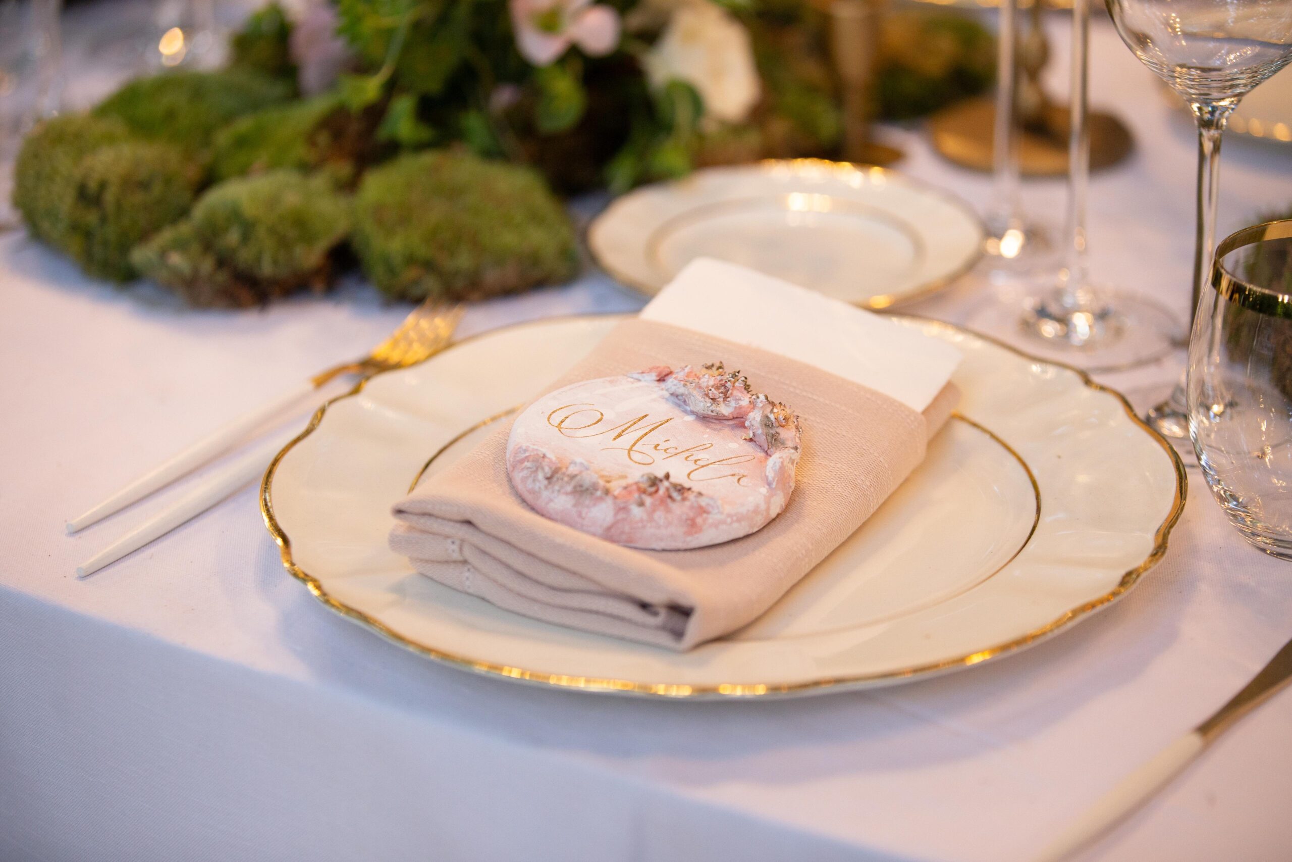 Equally important is the wedding stationery that graces the table. Menu cards and place cards, when thoughtfully designed, do more than inform—they complete the mise en place. Their paper texture, typography, and layout should echo the tone of the event: elegant script for formal receptions, handmade paper for rustic-chic gatherings, or botanical illustrations for garden weddings. Whether resting atop the charger or tucked into the napkin fold, these details coherently tie together the visual story of the table, reinforcing the atmosphere and aesthetic with quiet sophistication.