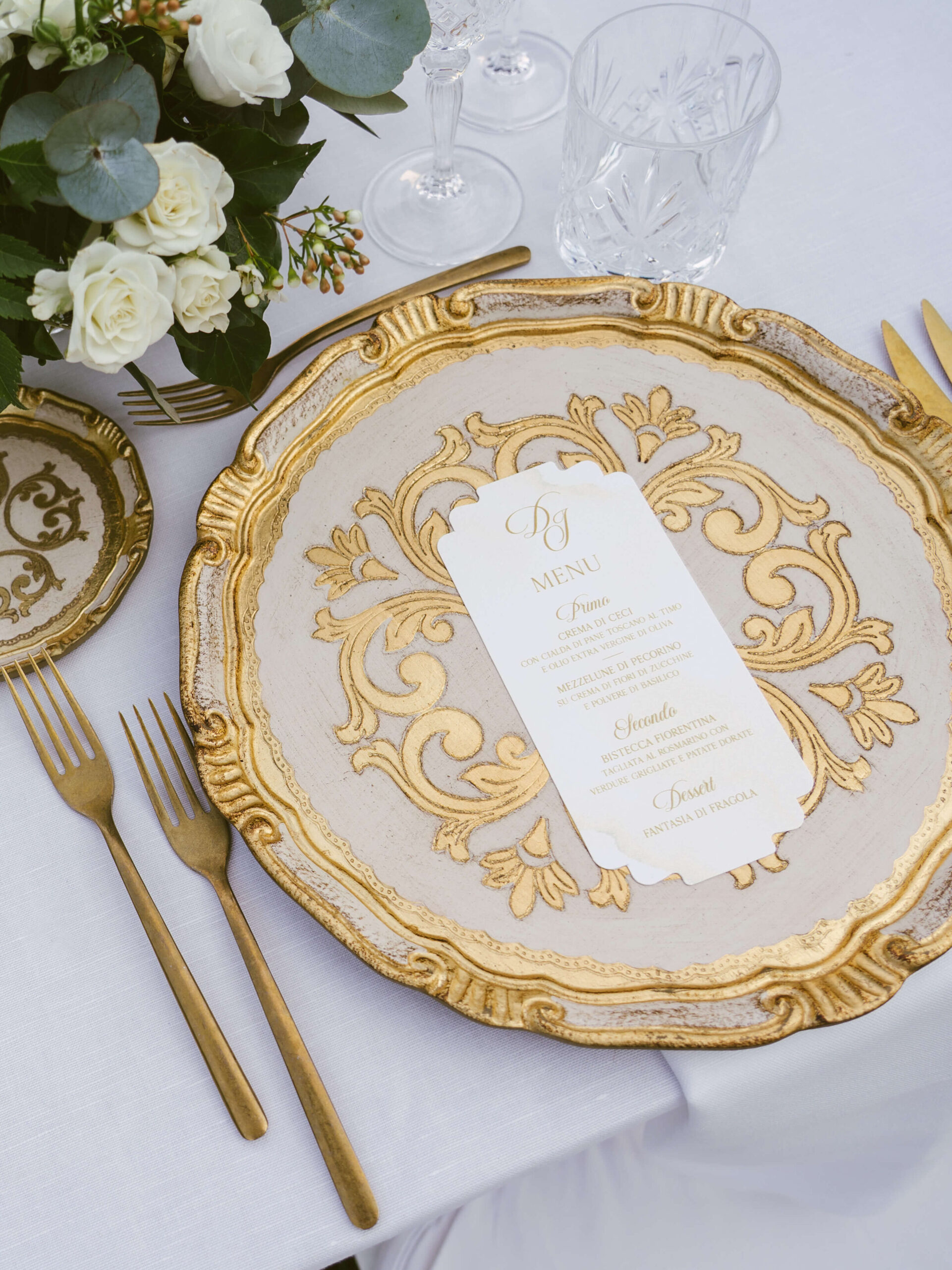 A well-designed table is never random—it speaks the same language as the wedding itself. Whether your celebration is rustic-chic among the olive groves, minimalist in a modern villa, or elegant and classic in a Renaissance palazzo, the mise en place should echo and elevate the atmosphere you’ve envisioned.
