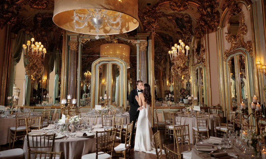 Ideal for couples seeking a luxurious and historic venue that combines baroque architecture with natural beauty, offering both indoor and outdoor settings.